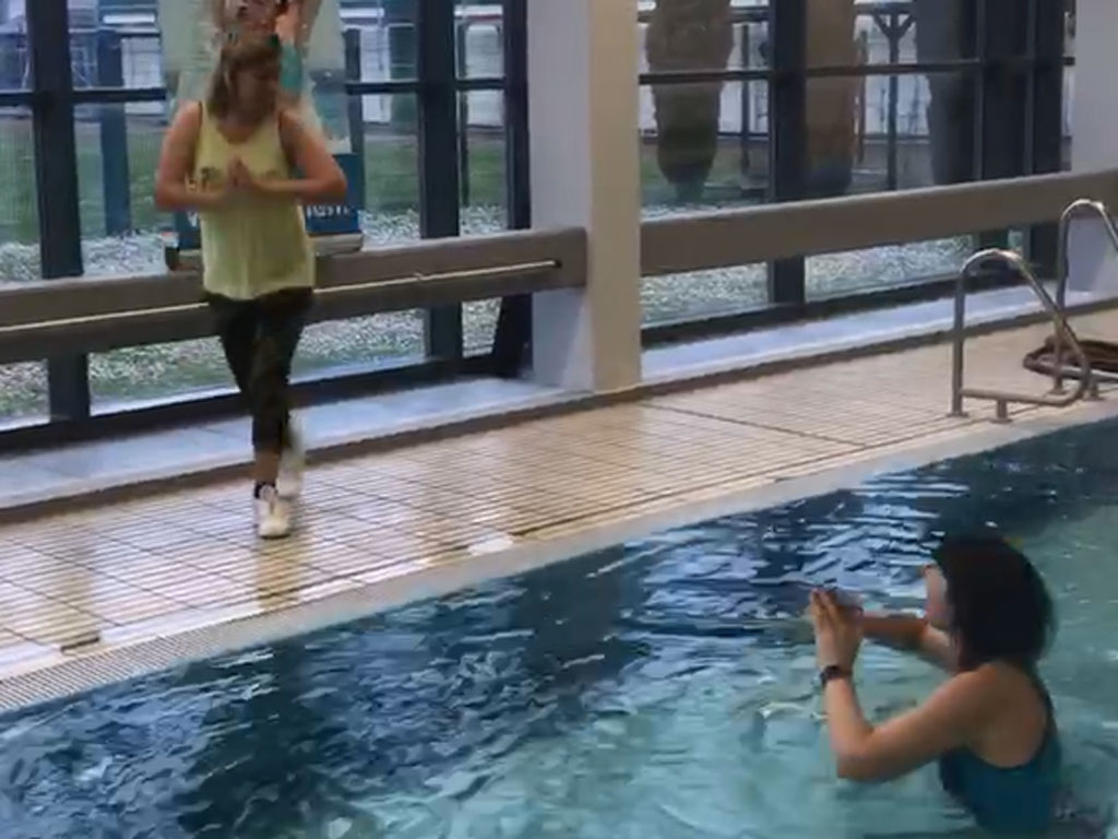 Grundlagen Aqua Dance; Lerne die Verschiedene Tanzformen im Wasser und an Land. Unser Ziel ist es, das du zum Ende passend zur Musik ein packende, motivierende Aqua Dance Stunde aufbauen kannst.